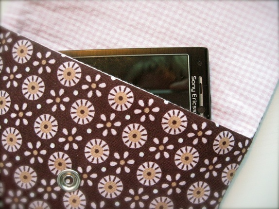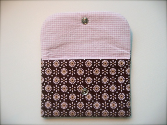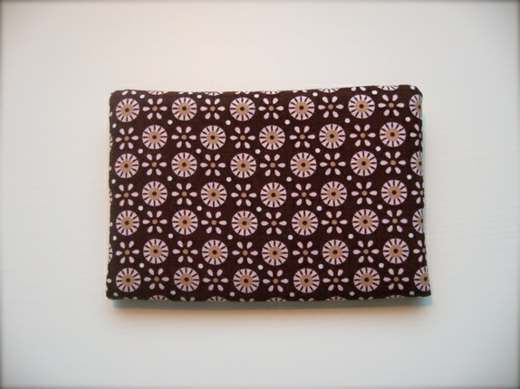 Et lite etui sydd av trivelige stoffer i god kvalitet. Mørk brun med sirkler i rosa og hvit fra Tilda. Fóret med bomull i små ruter rosa og hvit.