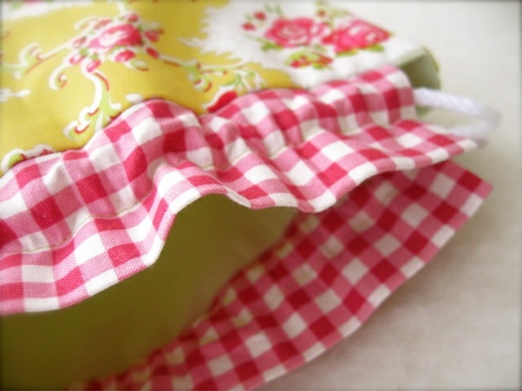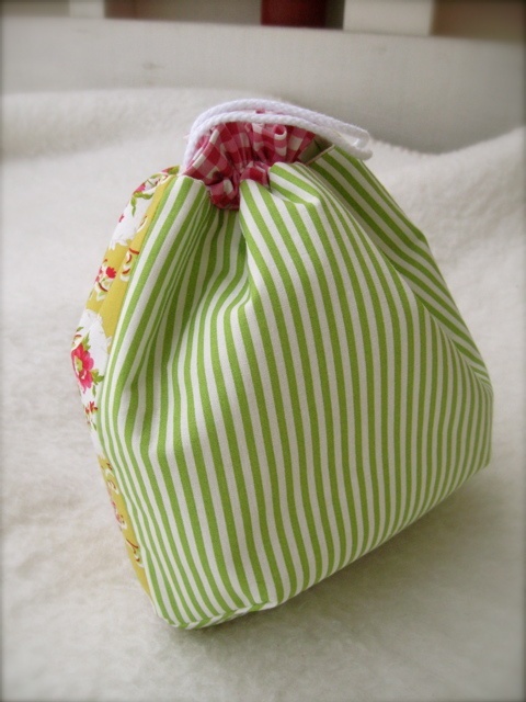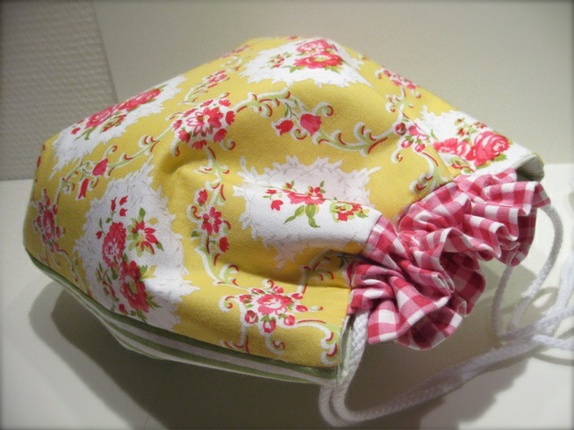 Denne vakre posen er sydd av bomull i sommerlige farger. Det gule er litt lysere og friskere enn hva som bildene vil gjengi.