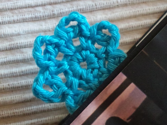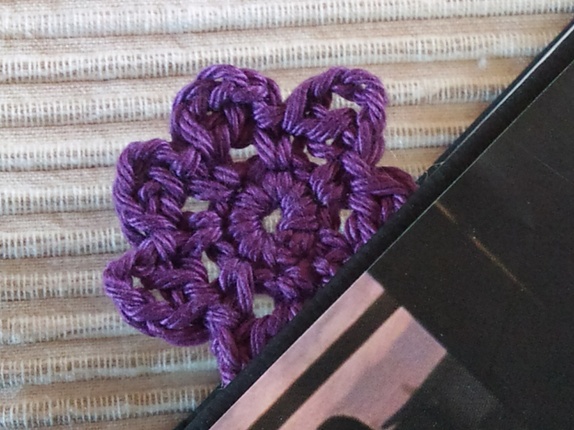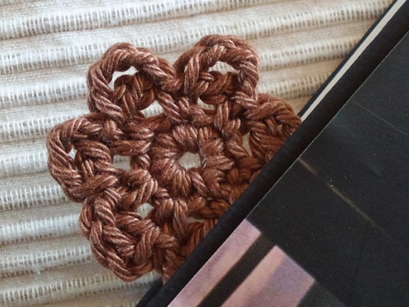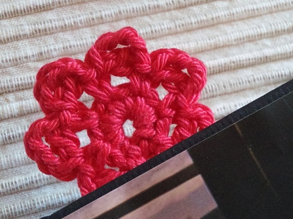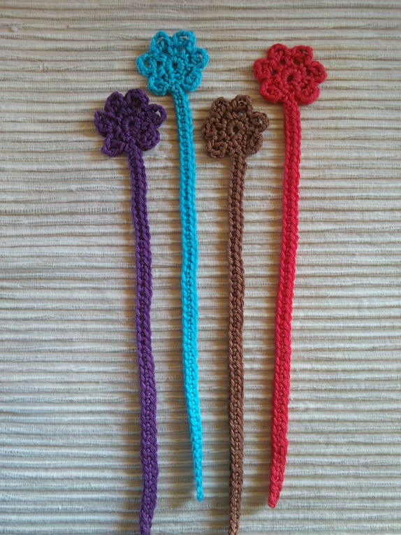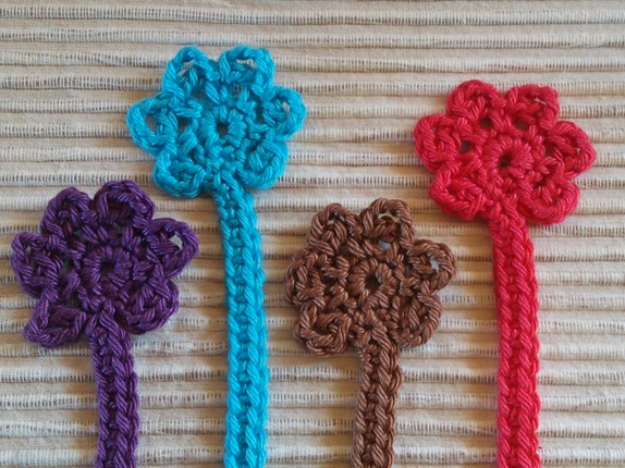 Bokmerker heklet i 100% bomullsgarn, som ligner blomster.