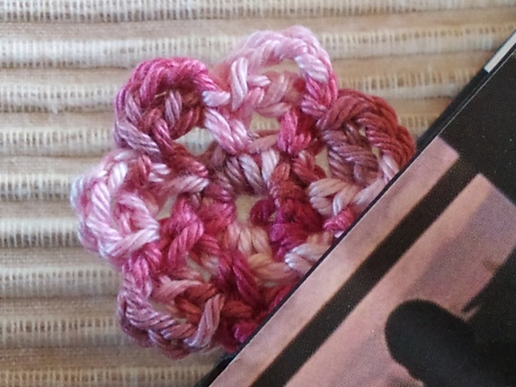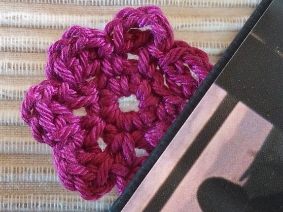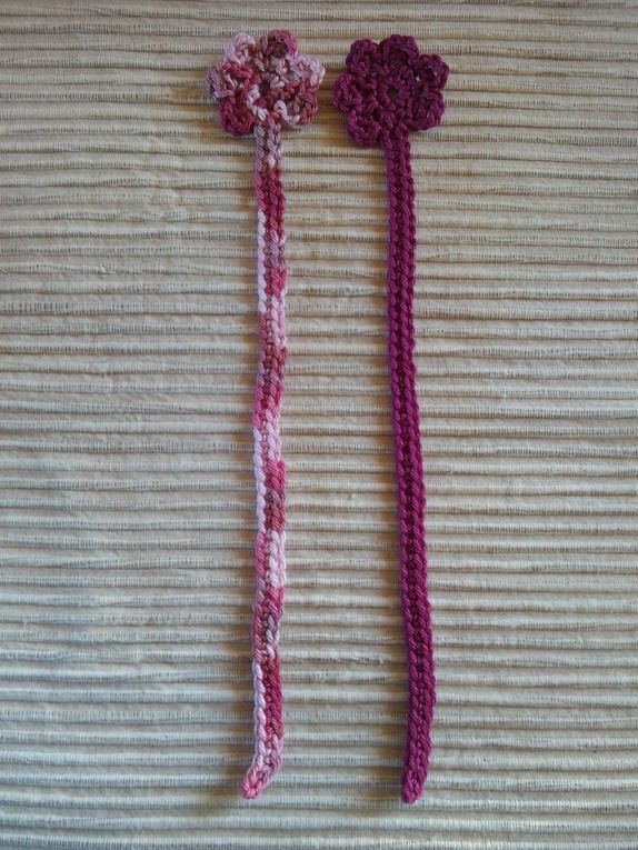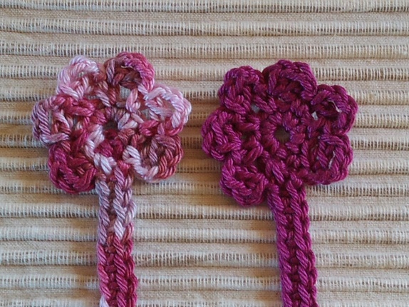 Bokmerker heklet i 100% bomullsgarn, som ligner blomster.