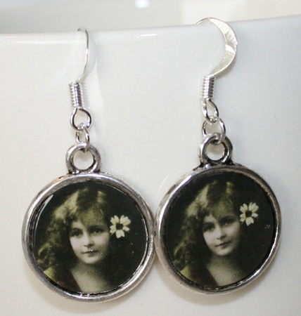 Ørepynt laget med ørekrok og ramme i nikkelfritt metall. Rammen har en diameter på ca 1,9cm.
