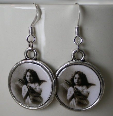 Ørepynt laget med ørekrok og ramme i nikkelfritt metall. Rammen har en diameter på ca 1,9cm.