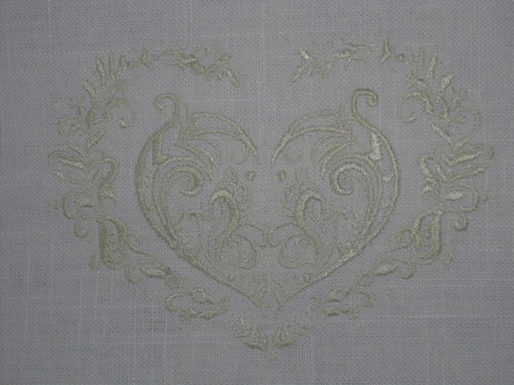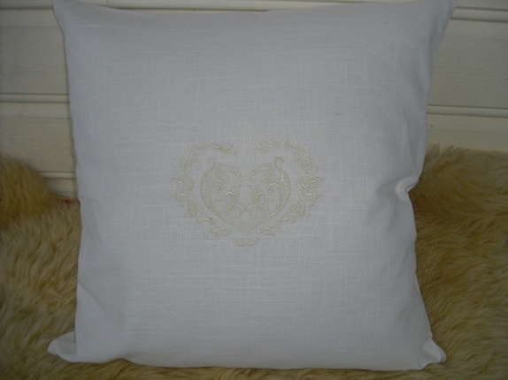 Putetrekk i off white lin.Forside med maskinbrodert hjertemotiv.