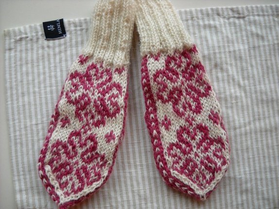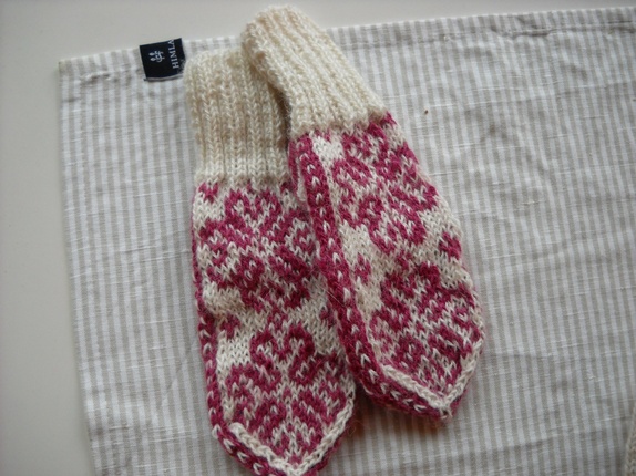 Votter i 100% alpakka i gammelt Rauma-mønster. Myke! Vaskes på 30 graders ullprogram i maskin. Str 6-8 år.