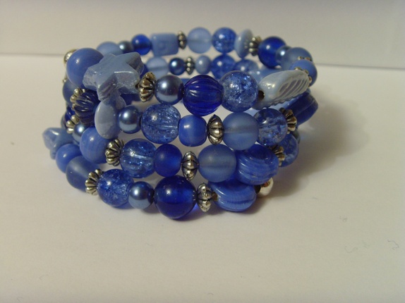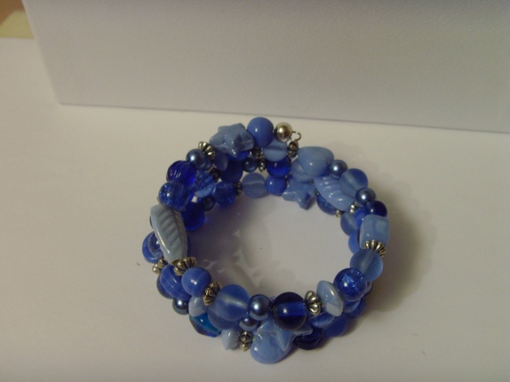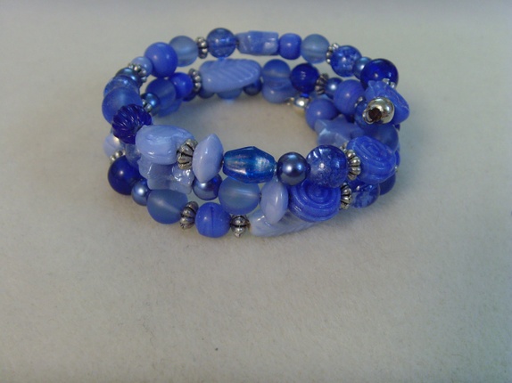Armbåndet består av 3 ringer med memorywire, med forskjellige glassperler og metallperler. Alt metall er nikkelfritt.