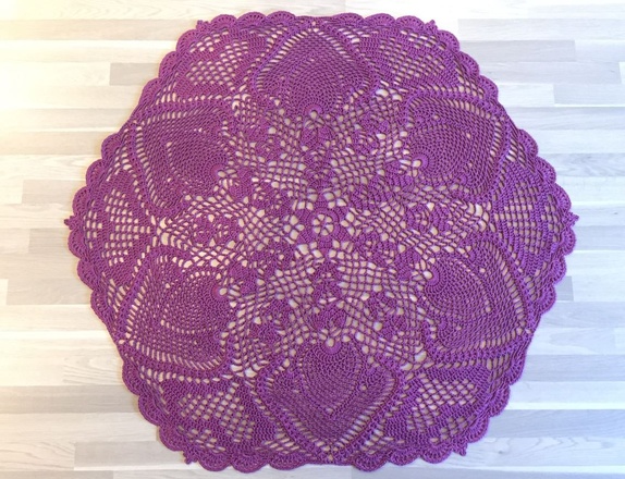 Stor rund lilla duk med lekre detaljer. Laget av 100% Bomull Sport. Diameter 92 cm. Kun ett eksemplar!