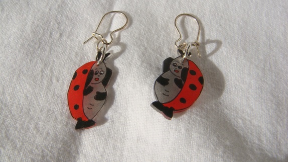 Øredobbene er laget av krympeplast,noe som gjør dem veldig lette.Dette paret er montert på nikkel fri ørekrok med lås. Ferdig ned priset Se flere smykker i butikken på salg i butikken.