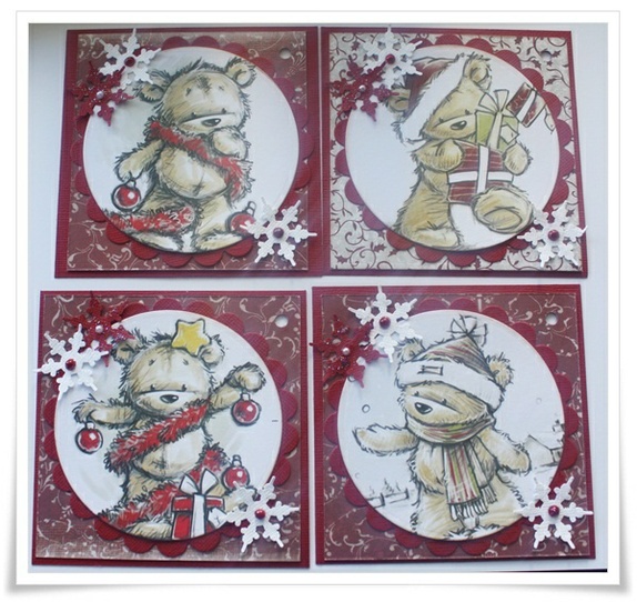 4 julemerkelapper, str er 10x10, og disse er flotte på pakkene. Bak er det er hvit skrivefelt til å skrive til og fra :).
