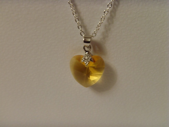 Enkelt kjede med swarovski hjerteanheng som er ca 14mm stort, i fargen Topaz.