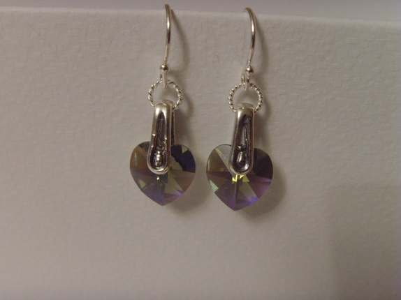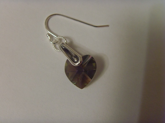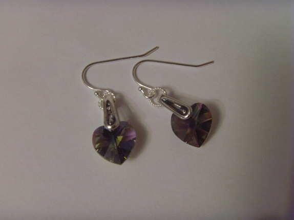 Swarovski krystaller i fargen Black Diamond. Hjertene er ca 10mm store, og har en AB finish, noe som gir de ekstra glans. Det siste bildet viser baksiden på hjertene.