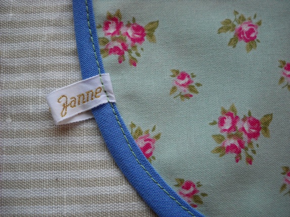 Smekke i 100% bomull. Lik bakside. Vaskes på 40 graders vanlig vask i maskin. Str: 0-12mnd.