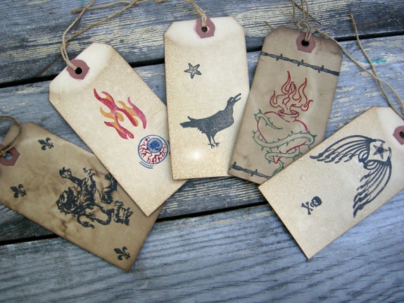 5 gavelapper med hånd stemplet motivLaget av manilla postlapper,dynket i te med kanelolje for et gammelt utseende. Måler 12 cm lang og 6 cm bred.