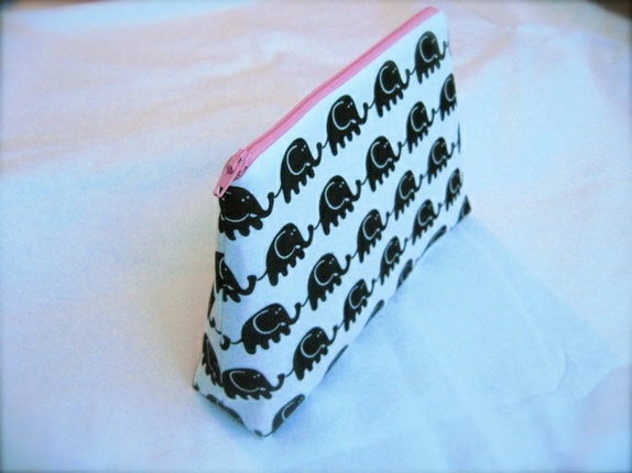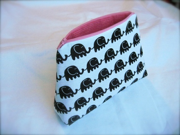 Enkel og elegant pung i hvit bomull med sorte elefanter.