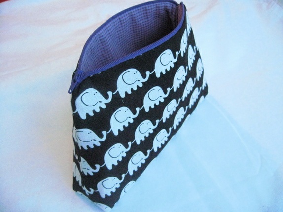 Enkel og elegant pung i sort bomull med hvite elefanter.