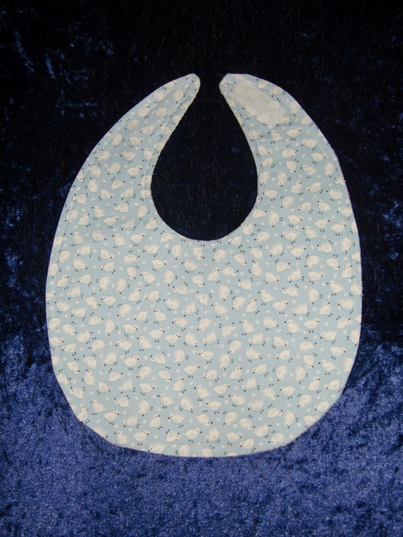 Babysmekke i godt bomullstoff med hvit plastfrotte på baksiden. Dette hindrer at gullungen blir våt på klærne under smekka.