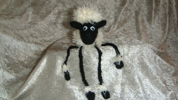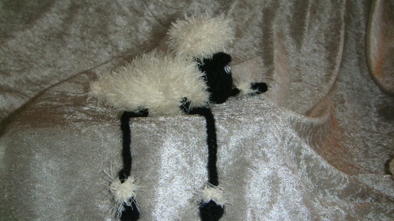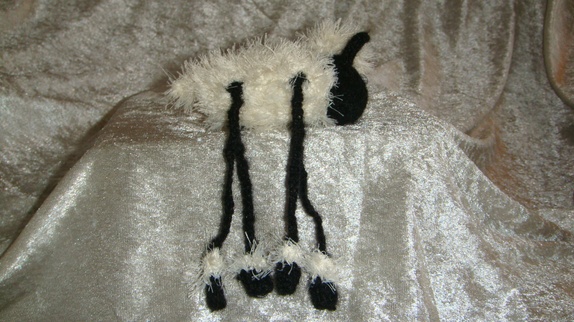 Shan er strikket i orkide og høyden uten ben er 7 cm.Dingle bena er 10 cm lange.Lengden fra hode til hale er 12 cm.Shan har på sydde øyne og er flott når han ligger på en hylle og dingler med bena,men han er også et herlig lite dyr og leke med.