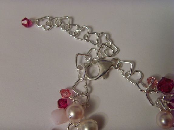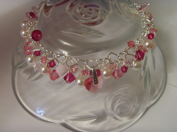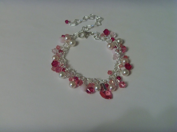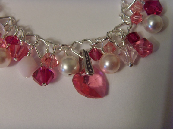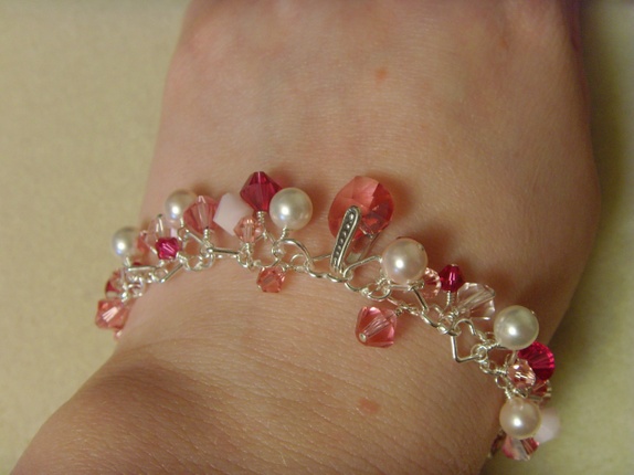 Armbåndet består av mange 4 og 6mm bikone swarovski krystaller. Fargene er i forskjellige rosa varianter. Rose, Light Rose, Rose Alabaster og Fuchsia. I midten av armbåndet er et et lite 10mm swarovski hjerte i fargen Rose.
