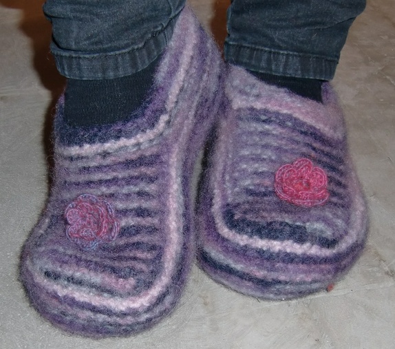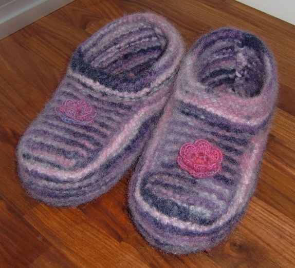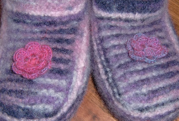 Deilige tova tøfler i lilla og rosa.Pyntet med blomster - også de i rosa og lilla.Sklisåle underUtrolig gode og varme - må prøves!