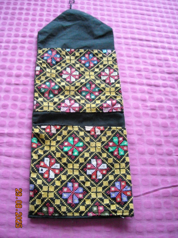Dette er et "smykke" på veggen.Brodert av beduinkvinner fra Sinai.Består av to lommer.