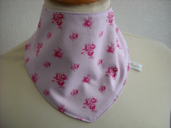 Siklesmekke i myk, deilig bomullsjersey og bomull. Rosa med roser på forsiden, hvit på baksiden. Trykknapp. Kan brukes på begge sider. One size for baby/ små barn. Vaskes på 40 grader.