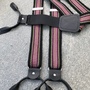 Seler vevet til Østfold-herrebunad.Farger tatt igjen fra vestestoffet.Båndet vevet på båndvev er koblet sammen med strikk via svart lær i ryggen. Bredde på båndet er ca. 40 mm. Kneppes på buksa.Lengden kan reguleres.