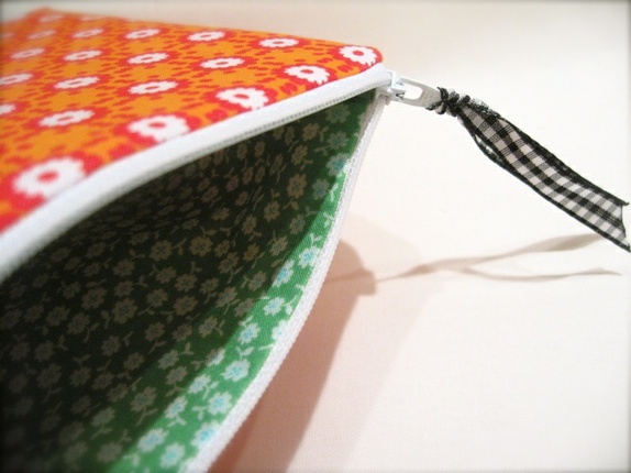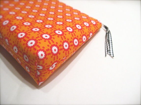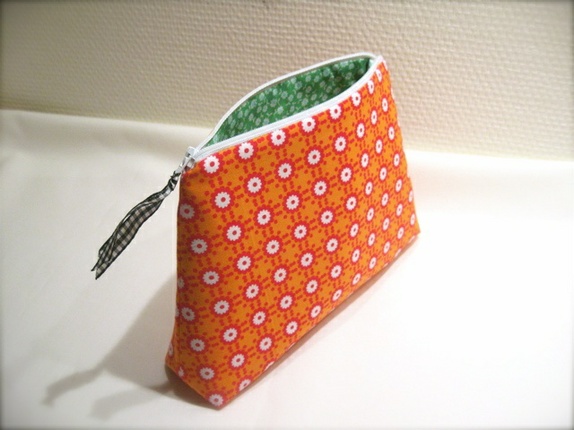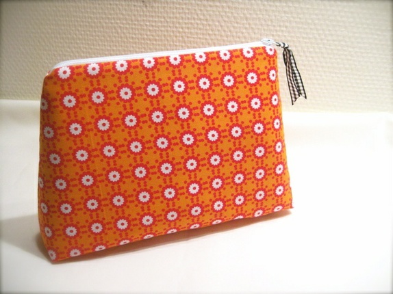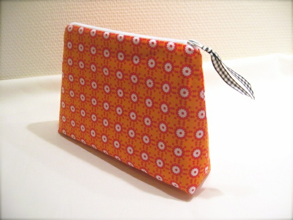 Enkel og elegant pung i orange bomull med mønster i rødt og hvitt.