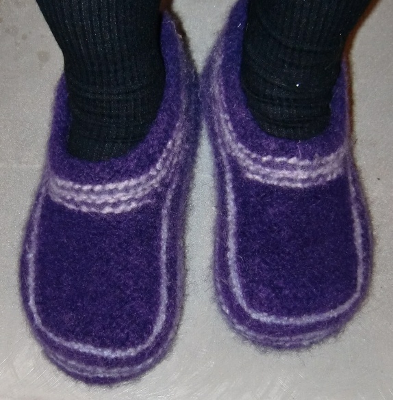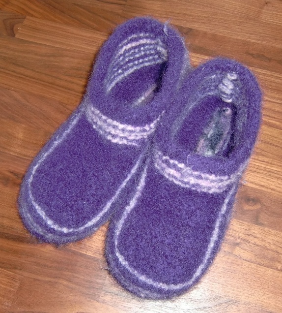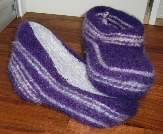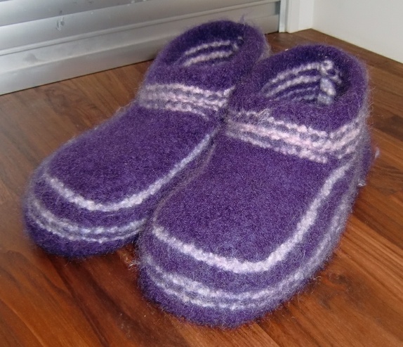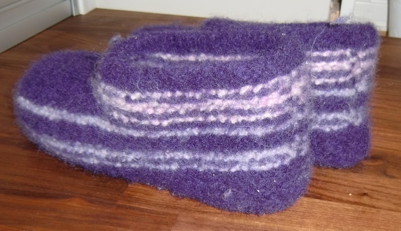 Deilige tova tøfler i lilla og med rosa og lys lilla striper.