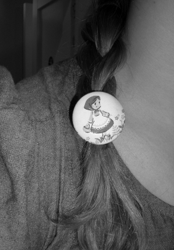 Rødhette på 5 cm stor hårpynt med rød strikk.