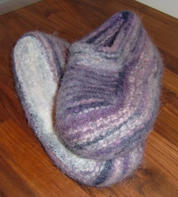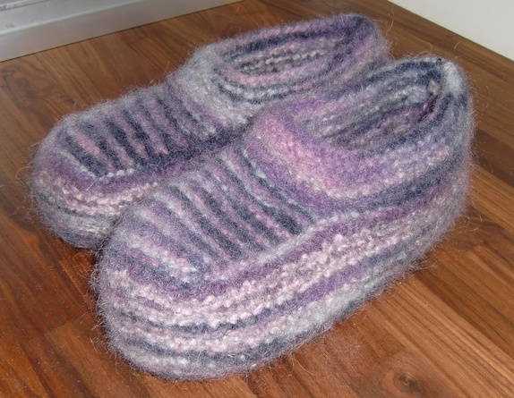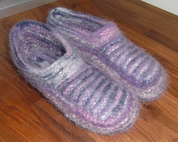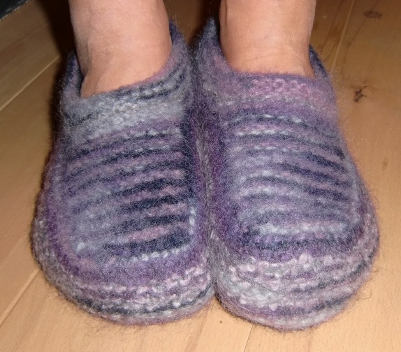 Deilige tova tøfler i lilla og rosa.