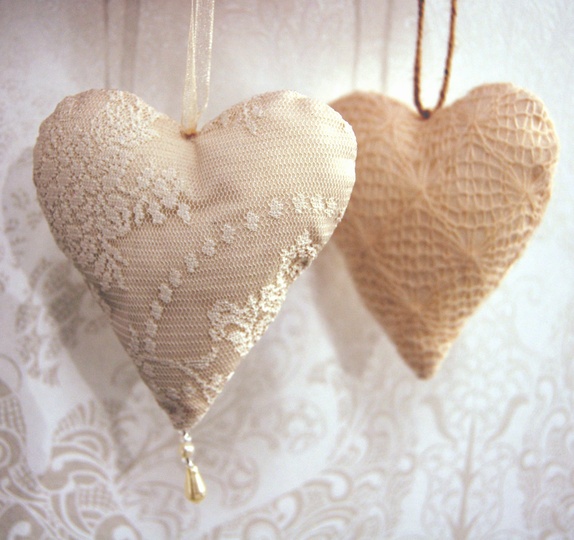 Hjertene kan bestilles i en str større også da er prisen 99,- Vi lager hjertene i ulike materialer. Hjerter med blonder, hjerter i nunofilt (tovet ull & silke)