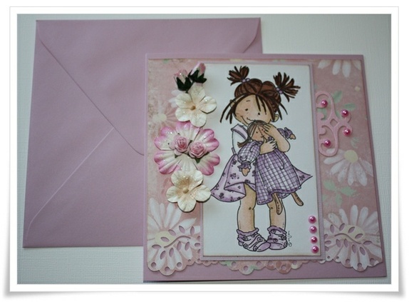 Kortet str er ca 13x13. Kommer i farget konvolutt som på bilde. Trykket er fra Mo Manning og farget med hånd av meg