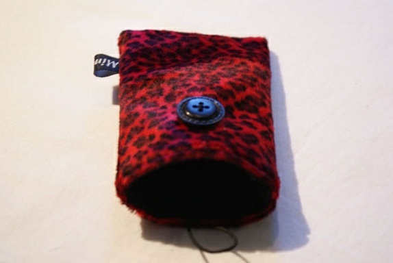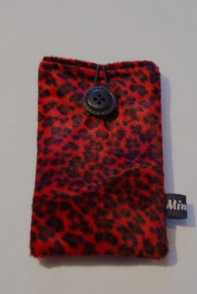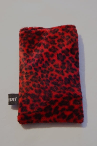 Her har jeg brukt et imitert pelsstoff som er korthåret med leopard mønster i svart og rødt.