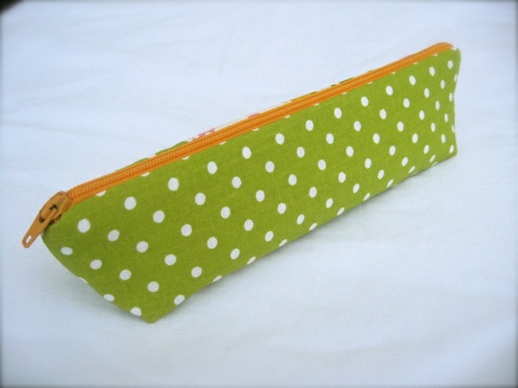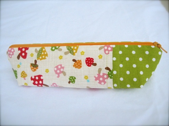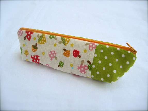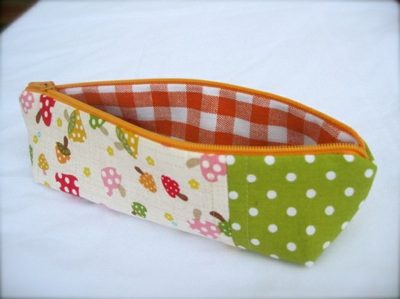 Fóret med orange bomull med ruter. Glidelåsen er mangogul.