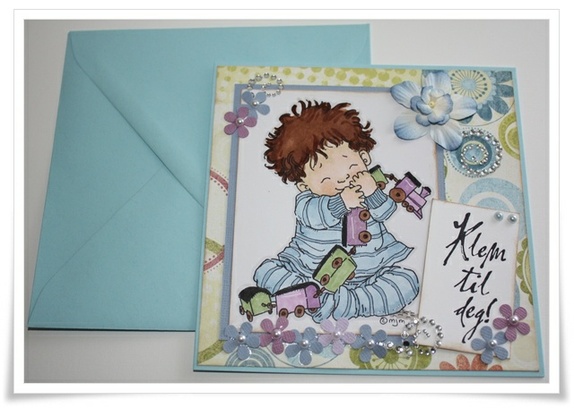 Kortet str er ca 13x13. Kommer i farget konvolutt som på bilde. Trykket er fra Mo Manning og farget med hånd av meg
