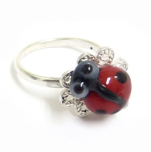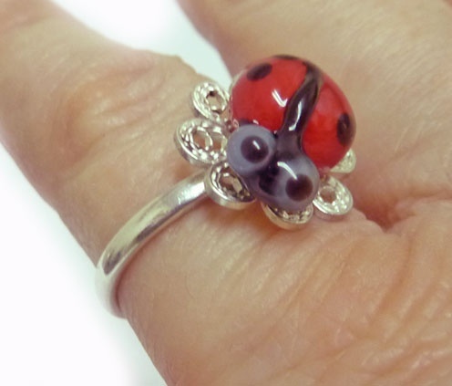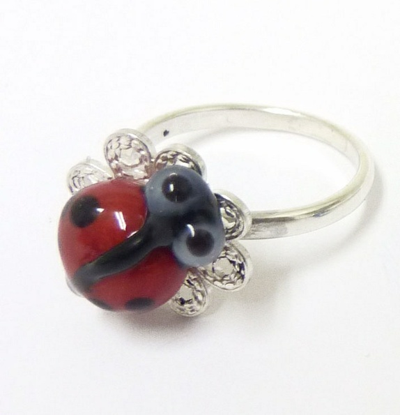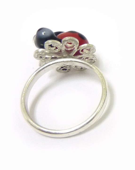 Sølv ring med marihøne og håndlaget filigran