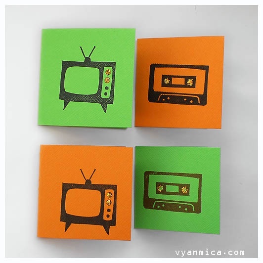 M I N I K O R T / M E R K E L A P P E R - Retro fjernsyn og kassett (4 stk)♥