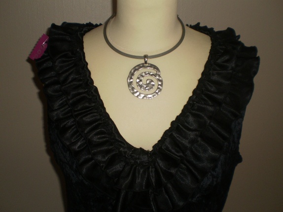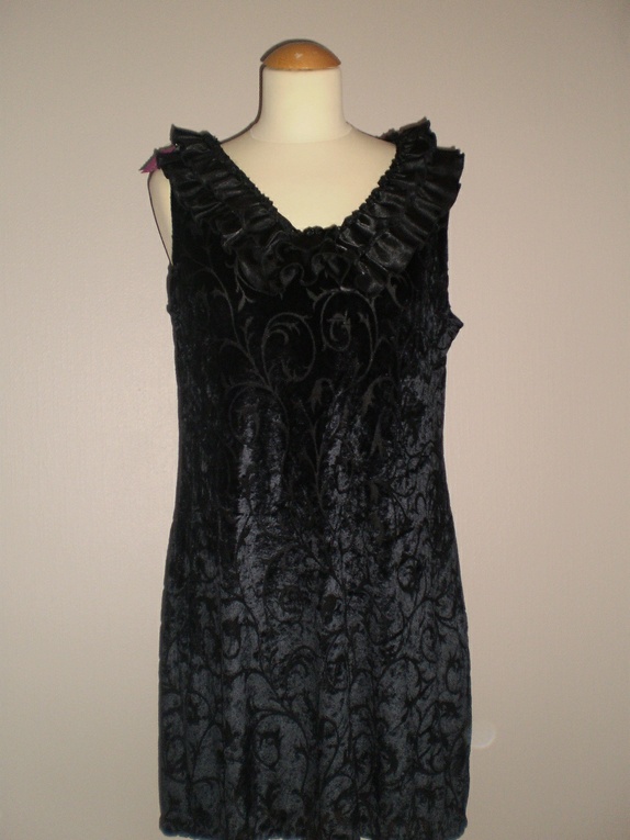 Sort kjole i i behagelig fløyel, med silkeblondekrave. Redesignet. Str L
