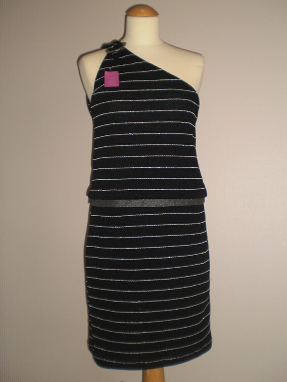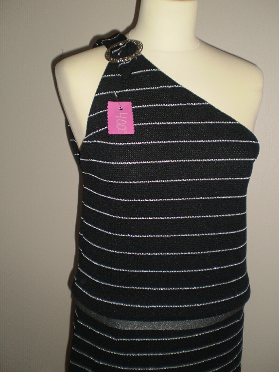 Topp og skjørt i sort m sølvstriper. Redesignet. Str 38