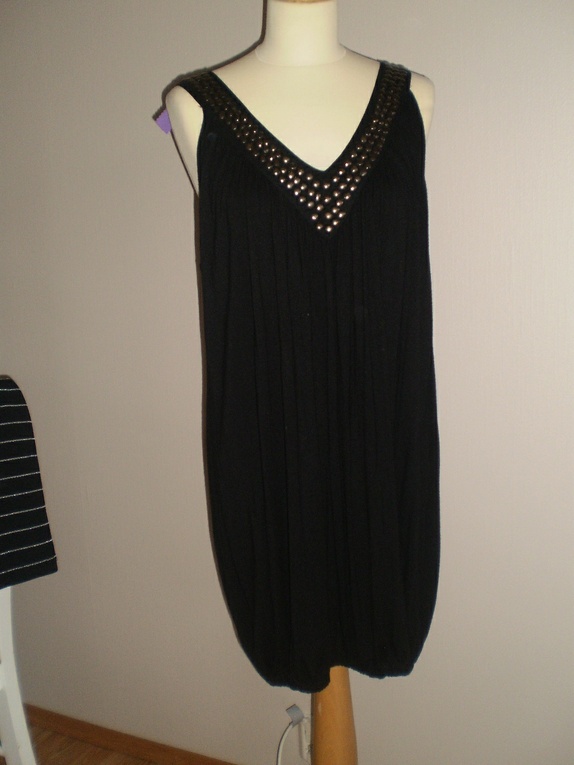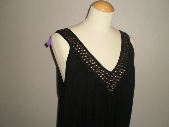 Sort redesinet kjole m "metallpaljetter" og strikk i nerkant. Str L (40-42)