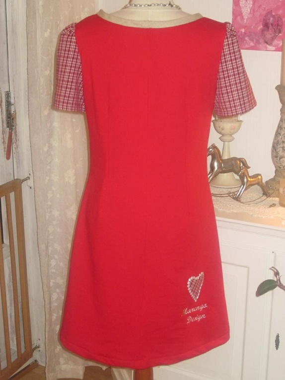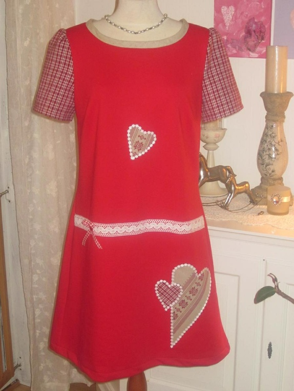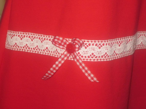 Myk og behagelig kjole til jul sydd i jersey stoff.Pyntet med applikasjoner og bånd :)