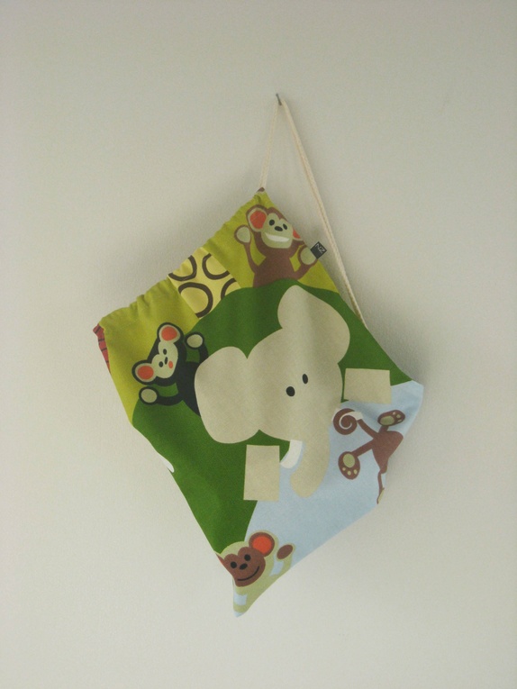 Fargerik, gammeldags gympose sydd i kraftig bomull. Posen har snørelukning med åpning på toppen. Motivet på denne posen er fra jungelen med elefanter, apekatter og andre dyr...