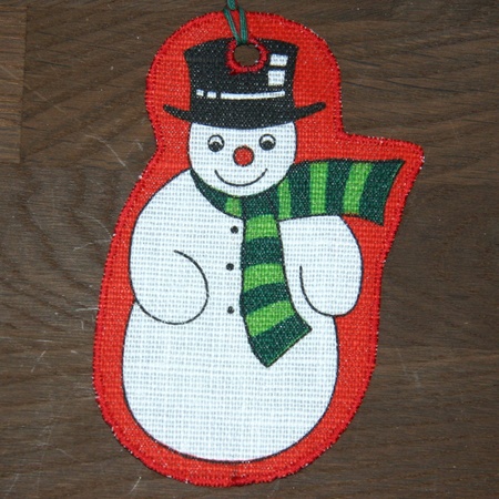 Disse godslige snømennlappene er sydd av et (mest sannsynlig ubrukt) julehåndkle i irsk lin funnet på loppemarked. De er så fine at de kan henges på juletreet etter at gavene er pakket opp!