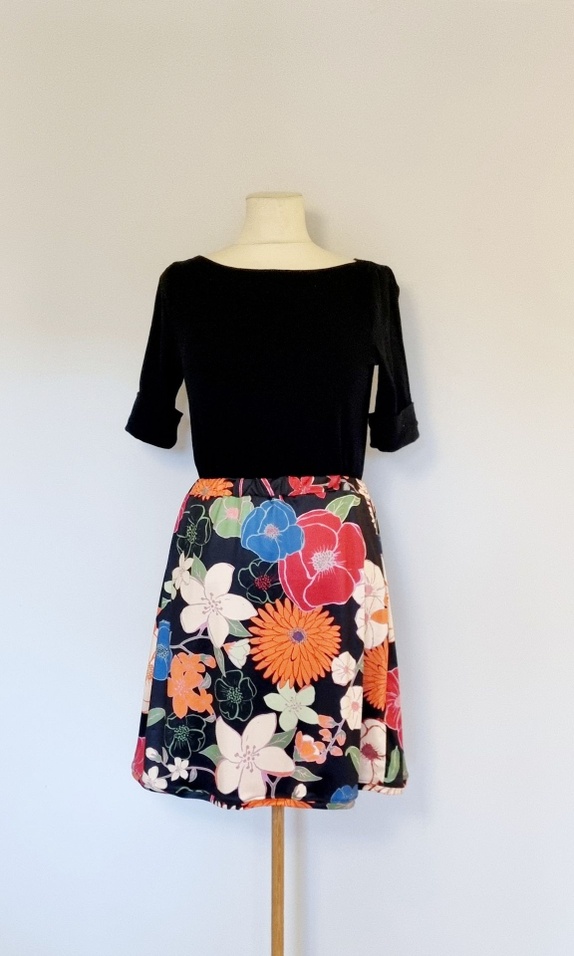 Skjørtet er sydd i et deilig elastisk glatt lycra stoff med strikk i livet.