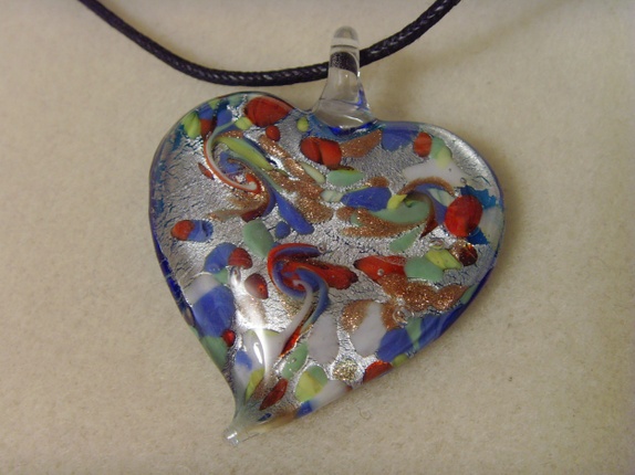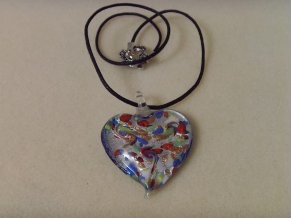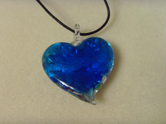 Enkelt smykke med hjerte formet glassanheng. Anhenget er ca 5cm.Kjedet er ca 44cm. Men jeg kan lage dette lengre eller kortere hvis ønskelig.