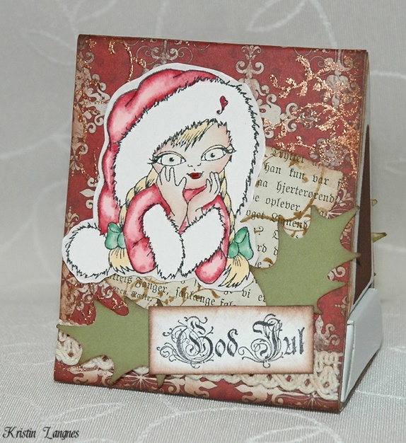 Dekorert fyrstikkeske. Fyrstikkesken er trekantet og 9,8 cm høy. Fyrstikkesken er pyntet på begge sider.