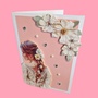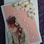 Dobbeltkort. Kvinne m. Blomster. I papp.