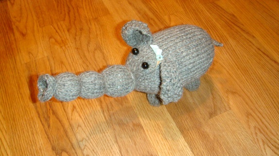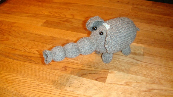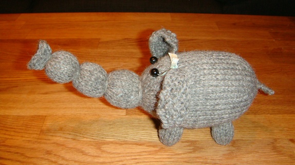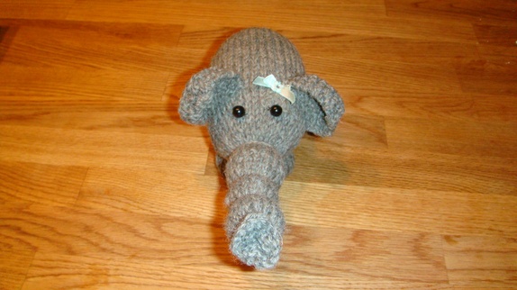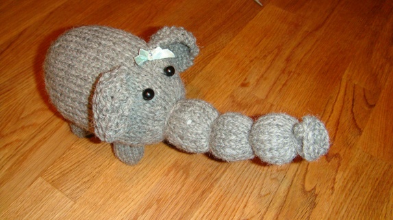 Ella er 25 cm lang og høyden er ca 10 cm.Hun har pyntet seg med sløyfe og har sorte perler til øyne.