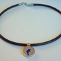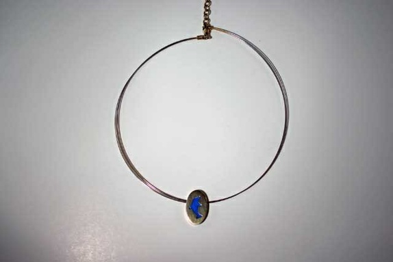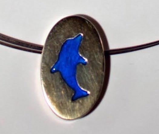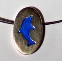 Forgylt stålklave med anheng, motiv er emaljert delfin