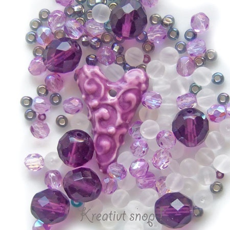En organzapose med perler og en håndlaget porselenshjerte for deg som vil lage smykke, veske, jakke... det kan brukes til så mangt.
