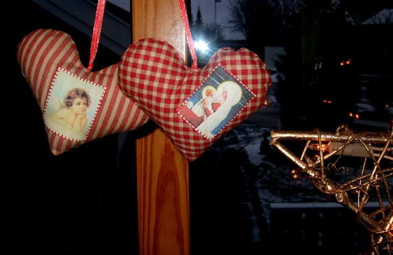 Overført bilde av et gammelt julekort er applikert på hjertet.